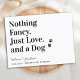 Nothing Fancy Just Love and a Dog! Let your Best Dog announce your wedding with this modern and simple 'Nothing Fancy, Just Love, and a Dog' pet dog save the date cards. Personalize with names, date, and wedding location. This dog wedding save the date announcement will be a hit with your family and friends. COPYRIGHT © 2020 Judy Burrows, Black Dog Art - All Rights Reserved. Nothing Fancy Just Love Dog Save The Date Announcement Postcard
