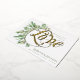 This wedding invitation features watercolor eucalyptus leaves with gold glitter accents and classic fonts creating a dazzling wedding invitation that your guests will love! "Nothing Fancy Just Love" is in an elegant gold foil calligraphy script creating a timeless and elegant look. Design is on a horizontal card for a modern, organized, and easy to read appearance.