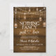 A design featuring romantic script type with string lights and rustic wood background.