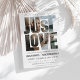 Having your Fun Minimalist Just Love Photo Words Cute Wedding Invitation match the theme of your party is a great detail that your guests will appreciate. The thoughtfulness of a consistent party theme is often appreciated and can show your guests that you can host a cohesive event.