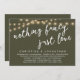 Announce your happily ever after in style (Nothing Fancy, Just Love) with our modern rustic olive green cottage string lights design wedding elopement celebration invitation card. Our Happily Ever After Party Celebration Invitation card is ideal for couples who have decided to elope and want to host a party to celebrate their union. With its sophisticated yet playful design, this invitation is sure to set the tone for an unforgettable event. The invitation card features a minimalist rustic elegant design scheme, adding a touch of timeless elegance to your celebration. Designed by TeeshaDerrick
