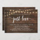 Mark the beginning of your forever with rustic elegance using our cottage string lights brown wood background themed, wedding elopement celebration invitation card, "nothing fancy just love". Perfect for couples extending their joyous occasion, this invitation exudes sophistication with a hint of playfulness, setting the stage for a memorable event. Adorned with a timeless modern script design theme, it adds a touch of refined charm to your festivities. Crafted by TeeshaDerrick, this invitation promises to beautifully capture your love story.