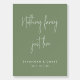 A modern wedding welcome board with "nothing fancy, just love" in white handwritten style font on a sage green background. Personalize with your names and wedding date.
