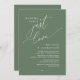 Mark the beginning of your forever with elegance using our contemporary forest sage green themed wedding elopement celebration invitation card, "Nothing Fancy Just Love". Perfect for couples extending their joyous occasion, this invitation exudes sophistication with a hint of playfulness, setting the stage for a memorable event. Adorned with a timeless romantic script theme, it adds a touch of refined charm to your festivities. Crafted by TeeshaDerrick, this invitation promises to beautifully capture your love story.