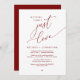 Mark the beginning of your forever with elegance using our contemporary burgundy red wine themed wedding elopement celebration invitation card, "Nothing Fancy Just Love". Perfect for couples extending their joyous occasion, this invitation exudes sophistication with a hint of playfulness, setting the stage for a memorable event. Adorned with a timeless romantic script theme, it adds a touch of refined charm to your festivities. Crafted by TeeshaDerrick, this invitation promises to beautifully capture your love story.