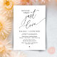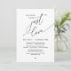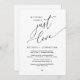 Mark the beginning of your forever with elegance using our contemporary black and white themed wedding elopement celebration invitation card, "Nothing Fancy Just Love". Perfect for couples extending their joyous occasion, this invitation exudes sophistication with a hint of playfulness, setting the stage for a memorable event. Adorned with a timeless romantic script theme, it adds a touch of refined charm to your festivities. Crafted by TeeshaDerrick, this invitation promises to beautifully capture your love story.