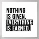 Nothing Is Given. Everything Is Earned. Motivational Black & White Fitness Quote Saying Typography