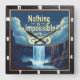 A visually striking piece showcasing a grand waterfall plunging between rugged cliffs, with dynamic clouds swirling overhead, creating a sense of natural wonder. The profound message, "Nothing is impossible with GOD," is clearly displayed, radiating conviction. This beautifully rendered artwork serves as a constant, uplifting testament to the extraordinary possibilities that exist when one believes in God's immense power to achieve the seemingly impossible.