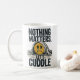 For the days when life feels too much, this “Nothing Matters, Let’s Cuddle” mug brings humor and heart in one cozy cup. Featuring a crying emoji wrapped in a blanket, it perfectly captures that mix of existential dread and affection. Ideal for gifting, venting, or just sipping tea while embracing the chaos.