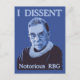 Ruth Bader Ginsburg in blue, with, "I dissent" at the top and, "Notorious RBG" caption. T-shirts, sweats, buttons, posters, novelty gift items.