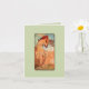 On the front of this lovely card, a reproduction of an Alfons Mucha illustration from the height of the Art Nouveau period entitled, "Summer". Pale green background throughout. Blank inside for your writing or customize it to have your words pre-printed.