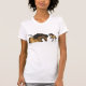 The material is a great quality that is hard to find with most tee shirts. Fabric was not see-through or thin at all, but was also very soft and comfortable. The shirt description states that it runs a little small, so I sized up one size for a perfect fit! I would definitely buy this type of tee shirt again because I love the fit and high quality fabric that I cannot find anywhere else. The printing was perfect and just as pictured. Loved the cute quote and really enjoy the tee in both the quality and design. I love quirky typography designs and funny quotes and I am extremely pleased with the overall quality and value I get at Zazzle!