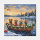 Bring energetic, fox-like charm to your holiday season with this beautiful Nova Scotia Duck Tolling Retriever Christmas design! This magical scene features three alert, medium-sized Nova Scotia Duck Tolling Retrievers (Tollers) sitting attentively in a cozy wooden boat, gently floating on a serene snowy lake at sunset. The boat is beautifully adorned with glowing Christmas string lights and fragrant pine garlands, while the dogs wear festive scarves. They are surrounded by colorful wrapped presents and cheerful holly branches. Soft snowflakes gently fall, and the shimmering reflection of the lights on the water creates a truly magical winter holiday atmosphere. This design is a perfect Christmas gift for any Toller owner, dog lover, or admirer of festive and unique sporting dog art, capturing the serene joy of the season.