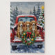 Celebrate the holiday season with this energetic and beautiful Nova Scotia Duck Tolling Retriever Christmas design! This cheerful scene features three bright, reddish-gold Tollers sitting happily in the back of a classic red pickup truck, nestled in a picturesque snowy winter forest. The vintage truck is adorned with a vibrant Christmas wreath, twinkling with red and gold ornaments and warm, glowing lights. Soft snowflakes gently fall, enhancing the winter wonderland effect. A decorated Christmas tree in the background completes this heartwarming picture, making it an ideal Christmas gift for any Toller owner, dog lover, or admirer of festive and active dog breeds. This design perfectly captures the joyful spirit of the holidays.