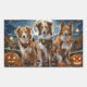 Unleash the spooky spirit with this eerie Halloween design featuring a pack of dogs under a dark, moonlit sky, surrounded by flying bats and glowing pumpkins. Perfect for those who love a touch of frightful fun with their furry friends!