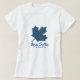Tee shirt with a plaid maple leaf in the district tartan for Nova Scotia - a bright blue, yellow and green pattern - with custom text options.