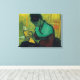 Canvas print features "Une liseuse de romans" i.e., "A Novel Reader" (1888) by Vincent Van Gogh. It features a woman with her face in a book, a library and ladder behind her. The woman is in cool tones while the book and the library elements are in a warm color scheme.