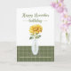 Embrace the elegance of November's Chrysanthemum. A stunning bloom in a glass vase on a green soft plaid table represents joy and abundance, making it a thoughtful and sophisticated birthday gift.