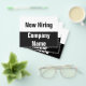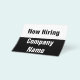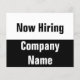 Front: The top portion is white with black text. (Shown: Now Hiring) The bottom portion is black with white text. (Shown: Company Name) Back: The back has lines of black display text you can edit to give pertinent details such as your address, email, website, phone number, and QR code. All text can be edited or deleted.