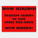 Yard sign for business trying to hire new employees. Large and bright colored to catch their eye, fully customizable to suit your needs!