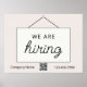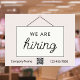Modern now hiring sign is perfect for boutiques, restaurants and stores of all kinds.