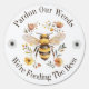 Vintage Look Pardon Our Weeds We're Feeding the Bees No Mow May Yard SIgn. Participating in No Mow May? Have a pollinator friendly yard or garden? Doing your part to save the bees? Let the world know to please pardon your weeds as you help save the bees. Vintage watercolor illustrations of bee with boranical and floral details. Peach text on a black blackground.