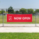 NOW OPEN Bright Red White Business with Logo Banner