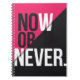 A vibrant and modern typography design featuring the motivational phrase "Now or Never." The split color scheme of hot pink and black emphasizes urgency and determination, making it perfect for apparel, posters, or accessories that inspire action and ambition.