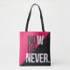 A vibrant and modern typography design featuring the motivational phrase "Now or Never." The split color scheme of hot pink and black emphasizes urgency and determination, making it perfect for apparel, posters, or accessories that inspire action and ambition.