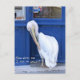 A pelican in Mykonos, Greece entering a store. This pelican has learned to block the door to the shops until he is bribed with food.