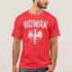 My 11 yo wore adult XL (5’7” 165#). The 8yo is small framed. She wore adult small and tied it in the back. Grandma wore adult large with long sleeve shirt underneath. Tall girl adult medium. Dark haired male adult large. Good quality dark Heather gray, Gildan brand shirt. -it was next up from basic choice and cost about $20 per shirt. Not too thick or thin. Washed and dried well, no major shrinkage. Not see-through. Can wear a bra under it fine. Screen print is just as shown and well done, front and back.