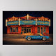 Nuart Theatre with a ’54 Corvette in Sawtelle California. The image was made in Art Deco style.
