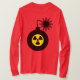A graphic portrayal of the dangers of nuclear power. A bomb with a brightly lit fuse burning down to nuclear apocalypse.