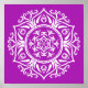 This white mandala sits on a bright purple background. The color is bright and creative. Part of the Rosenn Mandala Collection. This design may not print as bright as it appears online.