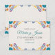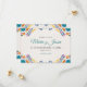 This Nuestra Boda Flowers Botanical Spanish Wedding Save the Date design showcases a rich and vibrant floral arrangement around the edges, with bold colors like red, orange, blue, purple, and yellow that create a festive and welcoming feel. The flowers are intricately combined with leafy patterns and small, detailed embellishments, giving the design a lively and textured look. The balance of bright, contrasting colors and the delicate, symmetrical arrangement make this an eye-catching option for a celebratory wedding stationery, especially one with a traditional or folkloric theme.