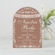 Say "sí" in bohemian style with this gorgeous terracotta Mexican-inspired wedding invitation! Showcasing delicate papel picado banners, intricate white floral folk art detailing, and a warm earthy terracotta background set within an elegant arched frame, this invitation beautifully blends cultural tradition with modern boho aesthetics. The soft contrast of white lacework against warm terracotta evokes the romance of a sun-drenched hacienda celebration.