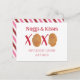 Chicken nuggets illustrations incorporated into nuggs & Kisses xoxo design. Back features pink and red striped pattern.