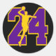 NUMBER 24 WITH BASKETBALL PLAYER CLASSIC ROUND STICKER