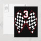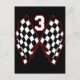 NUMBER 3 AND CHECKERED FLAGS POSTCARD
