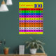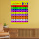 The artwork is a colorful presentation of the hundreds chart - a fun numbers educational poster for classrooms or nursery decor. Most elements of the chart are customizable, including text fields for the "100" number title, two text titles for the chart - currently read "Let's Count to" and "Numbers are fun!" - as all as a field for the teacher, classroom, or school information. This is ideal for everyday educational purposes as well as to celebrate the annual "100th Day of School" events. Personalize the chart to best suit your school or nursery use.