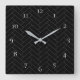 Numbers Black Gray Herringbone Pattern Square Wall Clock