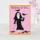 Catholic Nun "Thinking of You" greeting card, cute nun surrounded by black birds for the nun who loves animals.