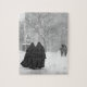 This fantastic puzzle features black and white photo of two nuns walking together on the grounds of Columbia University in New York City as it snows, circa 1946,