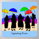Nuns waiting for rain art poster, "Expecting Rain", each nun holding a bright colored umbrella. Created by a nurse for those who appreciate the Catholic Sisters.