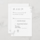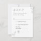 Design front features a pure-white background to your text which is displayed in the traditional format for a Catholic Wedding Response Card. All text is customizable. Front images are of two white doves and roseleaves.