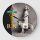 NURSE AND RESCUE DOG /Gold Caduceus RN Emblem Large Clock