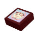 This product is made with beautiful mahogany wood, the inside is lined with white satin. The hinges are very sturdy and keeps a tight close on the box. The pattern tile is wonderful It's truly is an exquisite product. This is a gift for anyone and for any occasion. A fine wooden piece to display on your furniture anywhere in your home. The printing accented the design on the box very well. Very pleased with the Font.