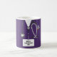 Creative nurse appreciation or graduation keepsake gift mug, featuring purple hospital scrubs. To personalize edit text to add nurse's name.