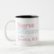 Cute gift for nursing, healthcare and medical professionals. Simple typography font, nurse definition custom name coffee mug. Personalize with name and title. Easily customize font style and color in the design tool. Makes a great gift for nurse appreciation week or nursing student graduation. Great for an RN, LPN, ARNP, Nurse Practictioner, NP, CRNA, Nurse Anesthetist. Also a perfect Mother's Day gift for nurses.