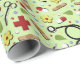Creative nurse party giftwrap featuring medical-themed design of healthcare supplies and flowers pattern.